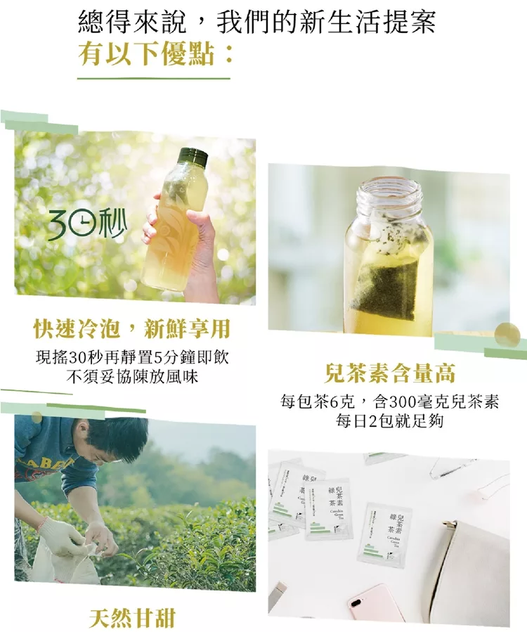 國際研究綜合顯示,要發揮兒茶素的機能性,必須要連續飲用45-90天,且每日攝取量要在 400-600毫克以上;市面上產品無添加的有苦澀感,順口的卻不天然,你曾想喝出健康,卻因為有香料防腐劑、或風味不佳而無法堅持嗎?