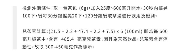 同時,因為是以原葉狀提供,中間不需經過工廠沖泡、滅菌、裝瓶,還有通路運輸等,我們發現它的兒茶素單價,是非常划算的;目前團購的組合中,若一次買三盒則每包預購價是 $13.3元,每包內含有 300-450mg 的高兒茶素含量!