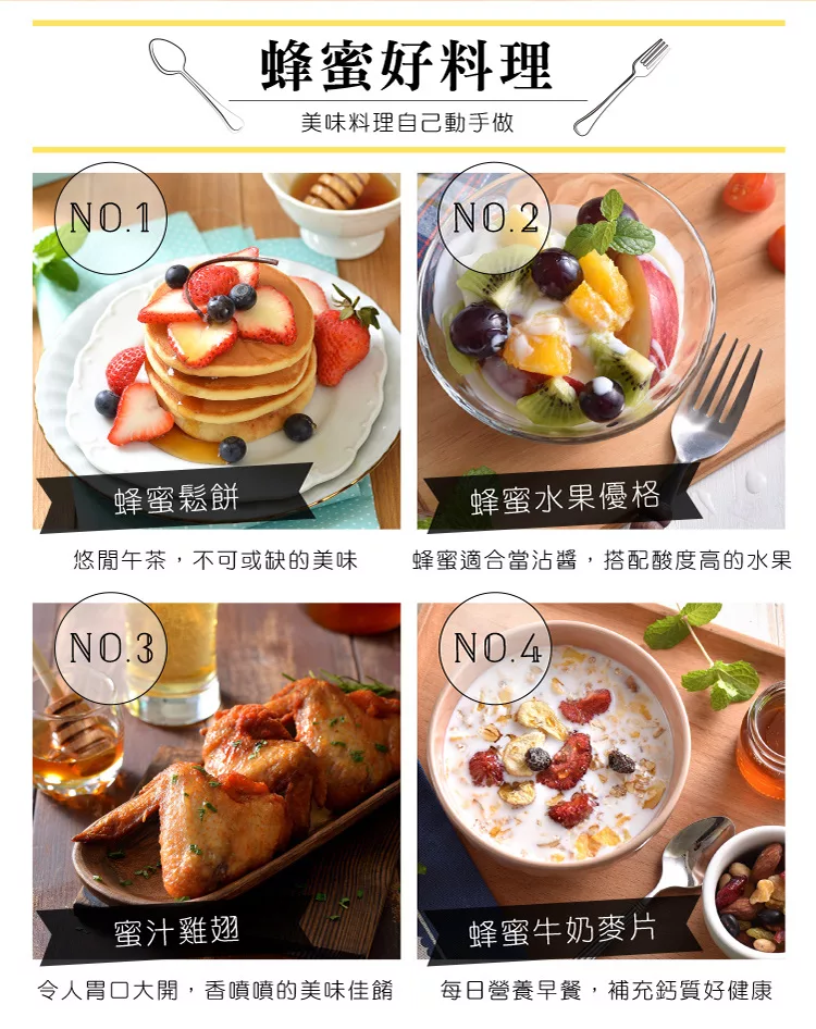※ 蜂蜜結晶屬自然現象,如遇結晶,請隔水加熱40度以下即可還原,建議食用方式是直接當作抹醬食用,較可保存原營養。