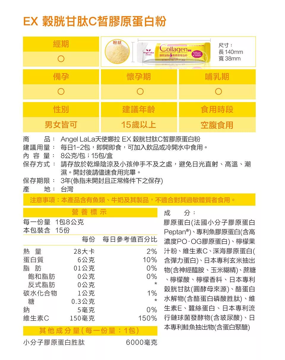 Angel LaLa 天使娜拉_EX膠原蛋白粉x5盒(牛奶風味/15包/盒)