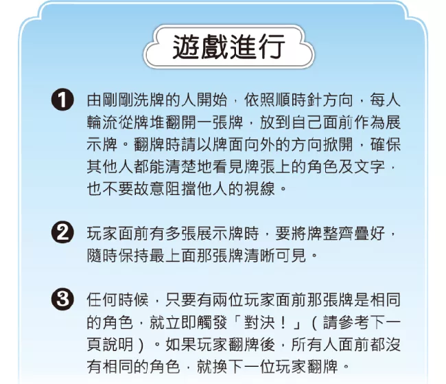 當有二位玩家的牌面為相同角色時,立即觸發「對決」!
