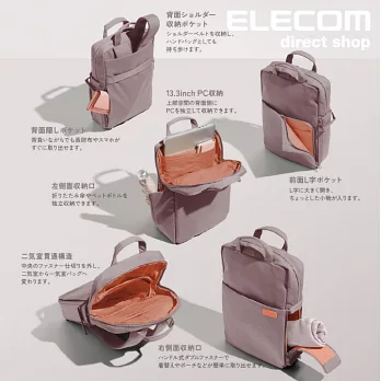 ELECOM 帆布3WAY薄型後背包OF04- L玫瑰灰