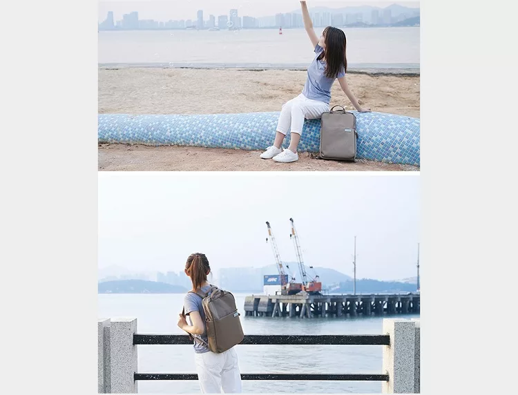 【好背客howback】韓版輕量休閒雙肩包/多功能收納曬娃包/學生後背包(無掛件) -米色