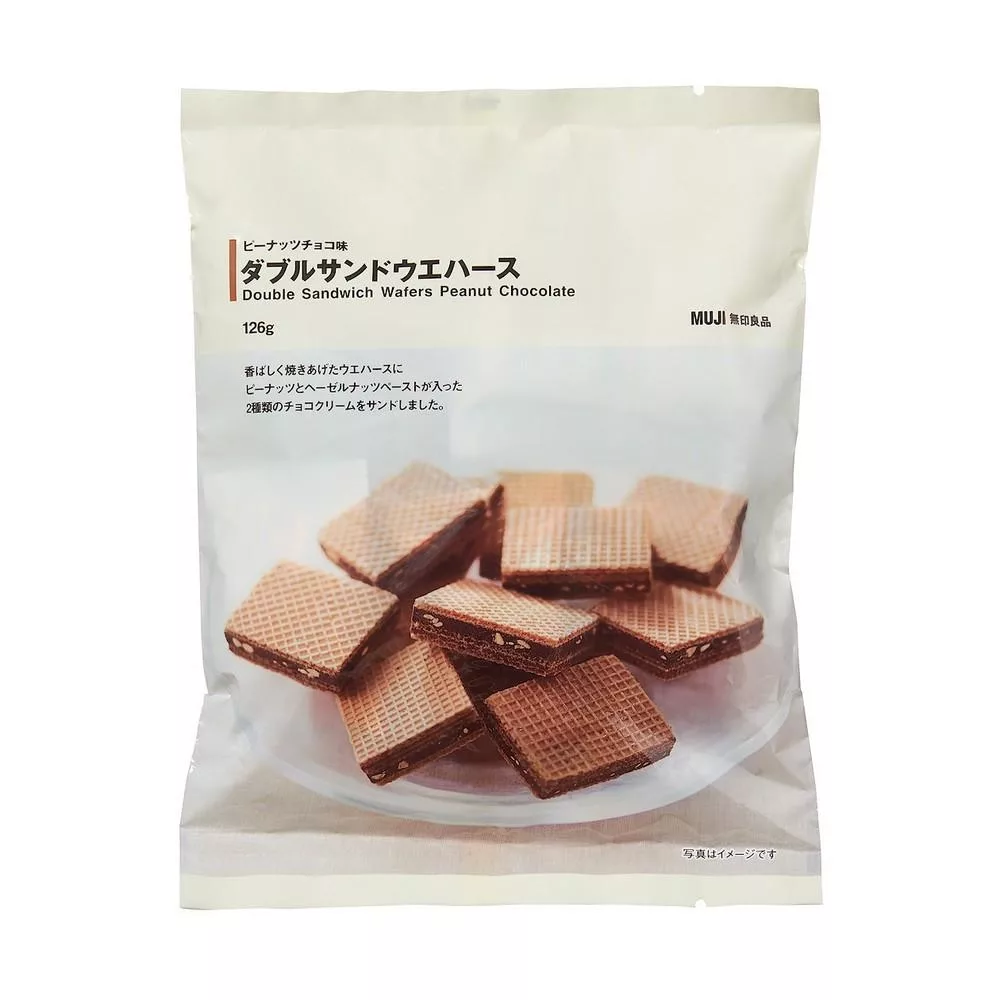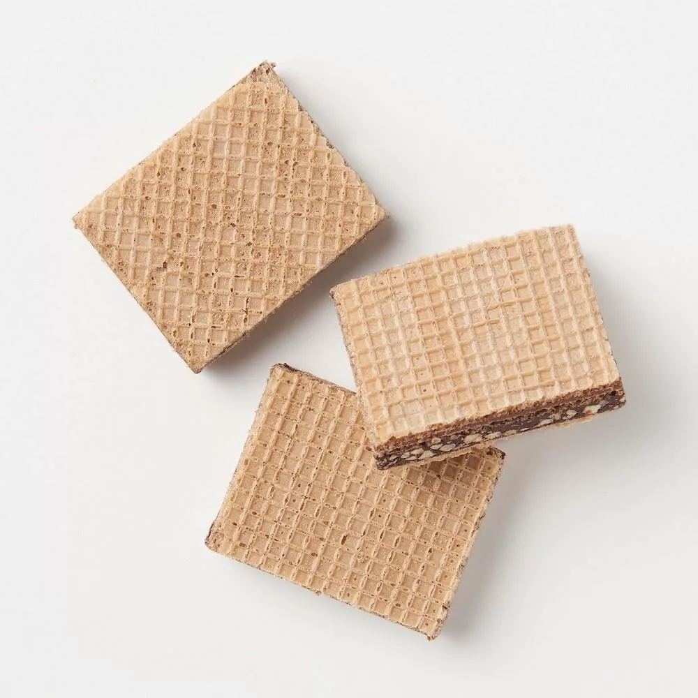 散發可口香氣的威化餅皮,搭配添加花生、榛果醬等兩種滋味的可可奶油夾心。