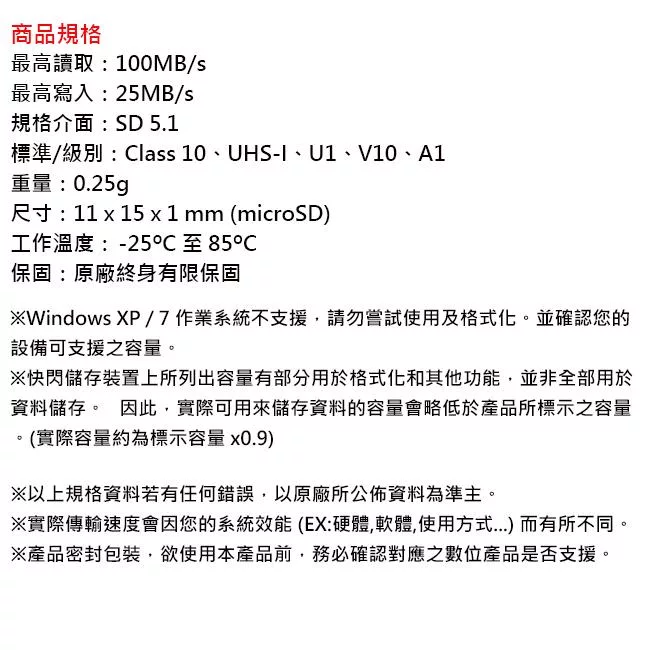 ADATA 威剛 128G 100MB/s microSDXC UHS-I V10 記憶卡