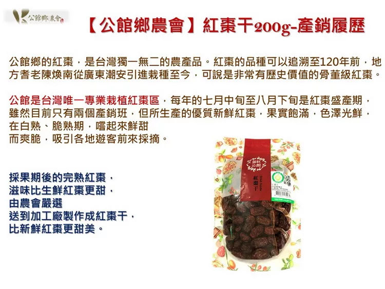 【苗栗公館鄉農會】紅棗干 200g - 產銷履歷