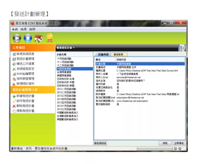 內建 SMTP Server,只需要選擇要寄送的檔案或網址,並提供收件人Email名單,不需架設 Mail Server,就能輕輕鬆鬆的透過它來發送電子郵件。