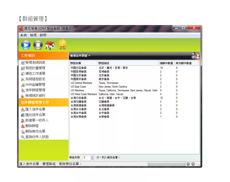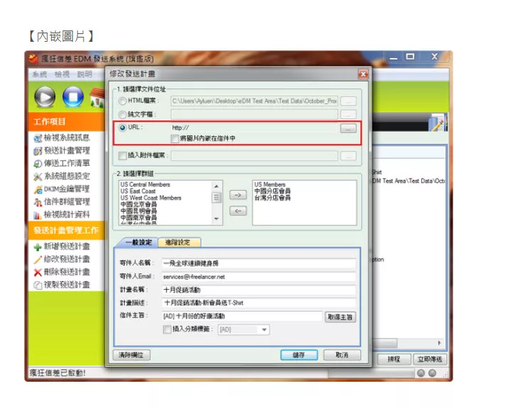 內建 SMTP Server,只需要選擇要寄送的檔案或網址,並提供收件人Email名單,不需架設 Mail Server,就能輕輕鬆鬆的透過它來發送電子郵件。