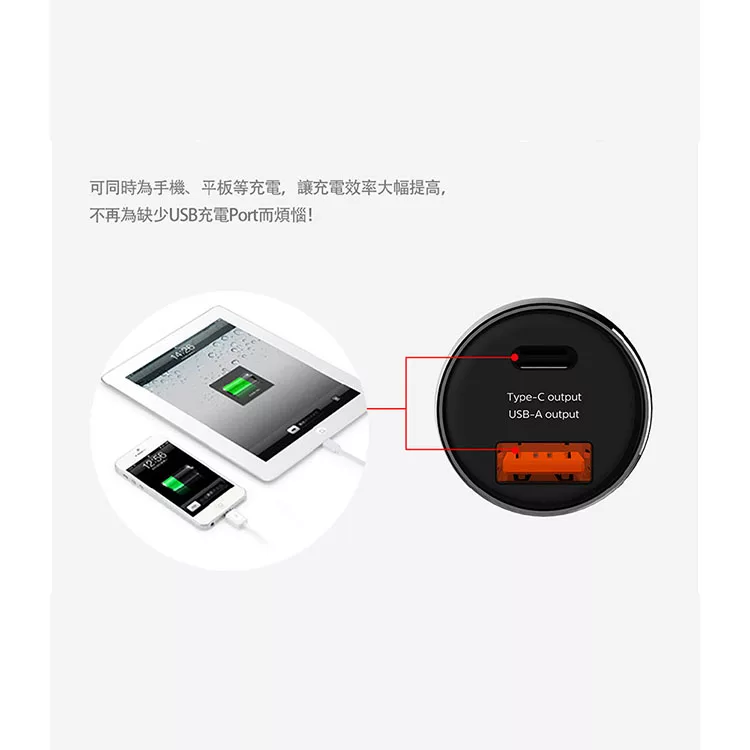 AHEAD 60W雙Type-C車充 PD+PD快充 迷你充電器 黑色