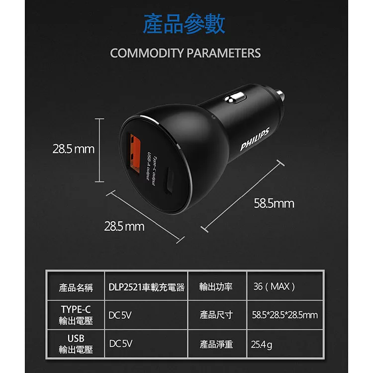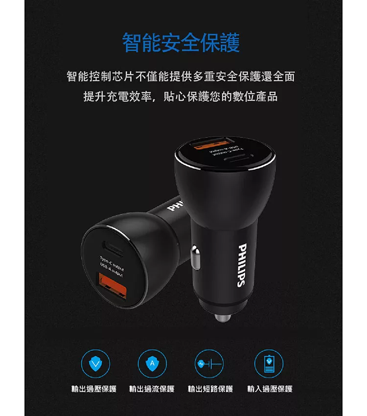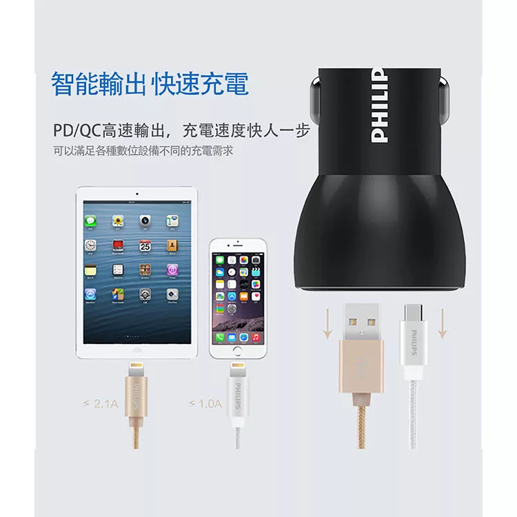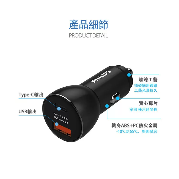 Philips 車充 36W Type-C PD快充 QC快充 智能充電 雙孔輸出 高效穩定 車用配件