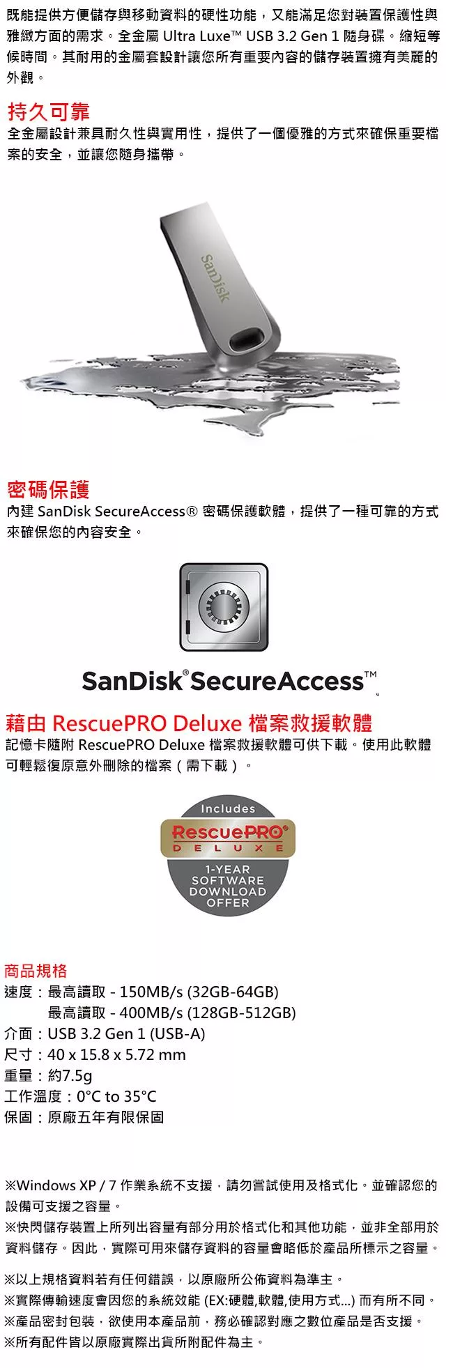 【代理商公司貨】SanDisk 128GB CZ74 Ultra Luxe 隨身碟