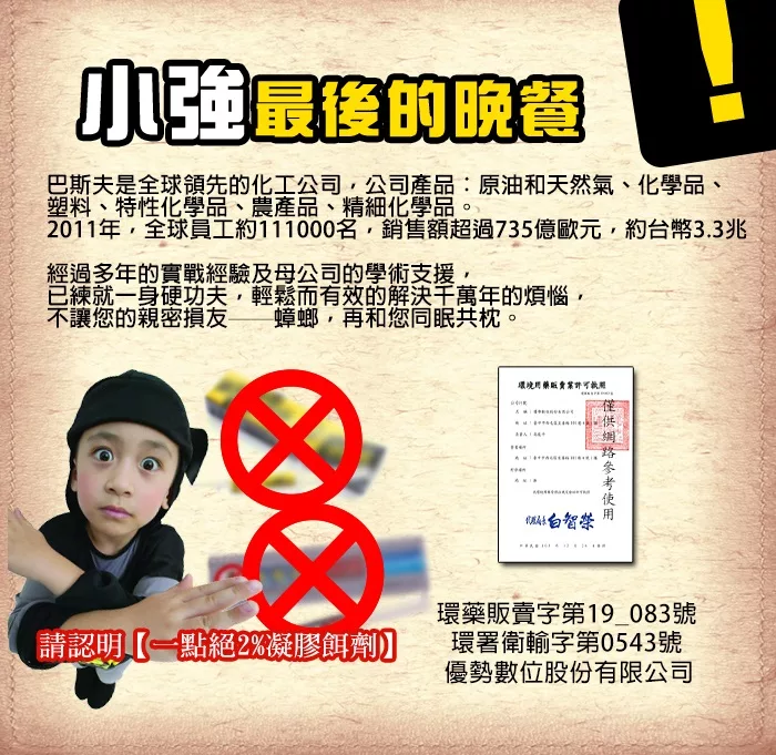 (二)合法環境用藥應有環境用藥許可證字號,可至環保署化學局「環境用藥許可證及病媒防治業網路查詢系統」。
