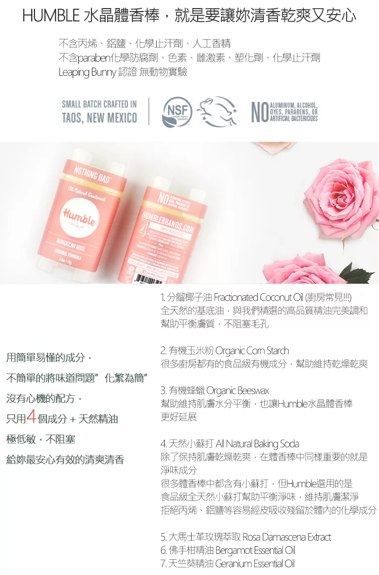 Humble 使用的是令人安心全草本天然成分讓肌膚常保乾爽
