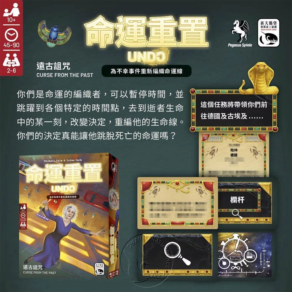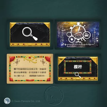 注意:本遊戲無須說明書,開始時先閱讀大紙牌中的5張手冊牌(編號M1-M9)切勿洗牌或隨意翻看其他紙牌內容。