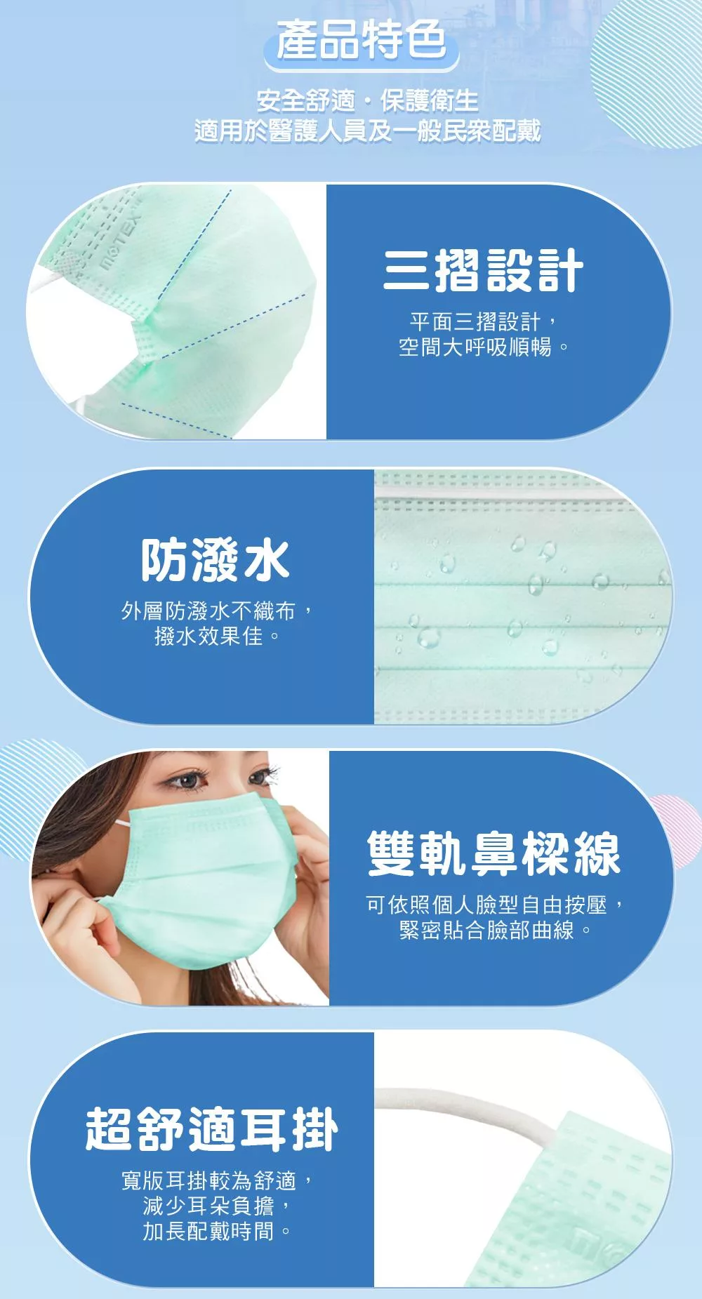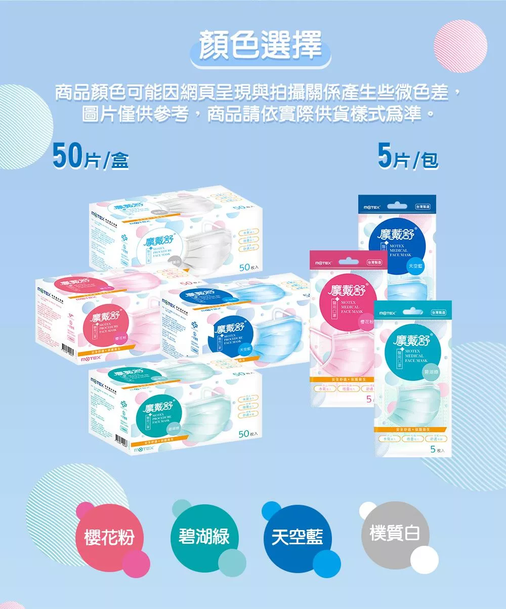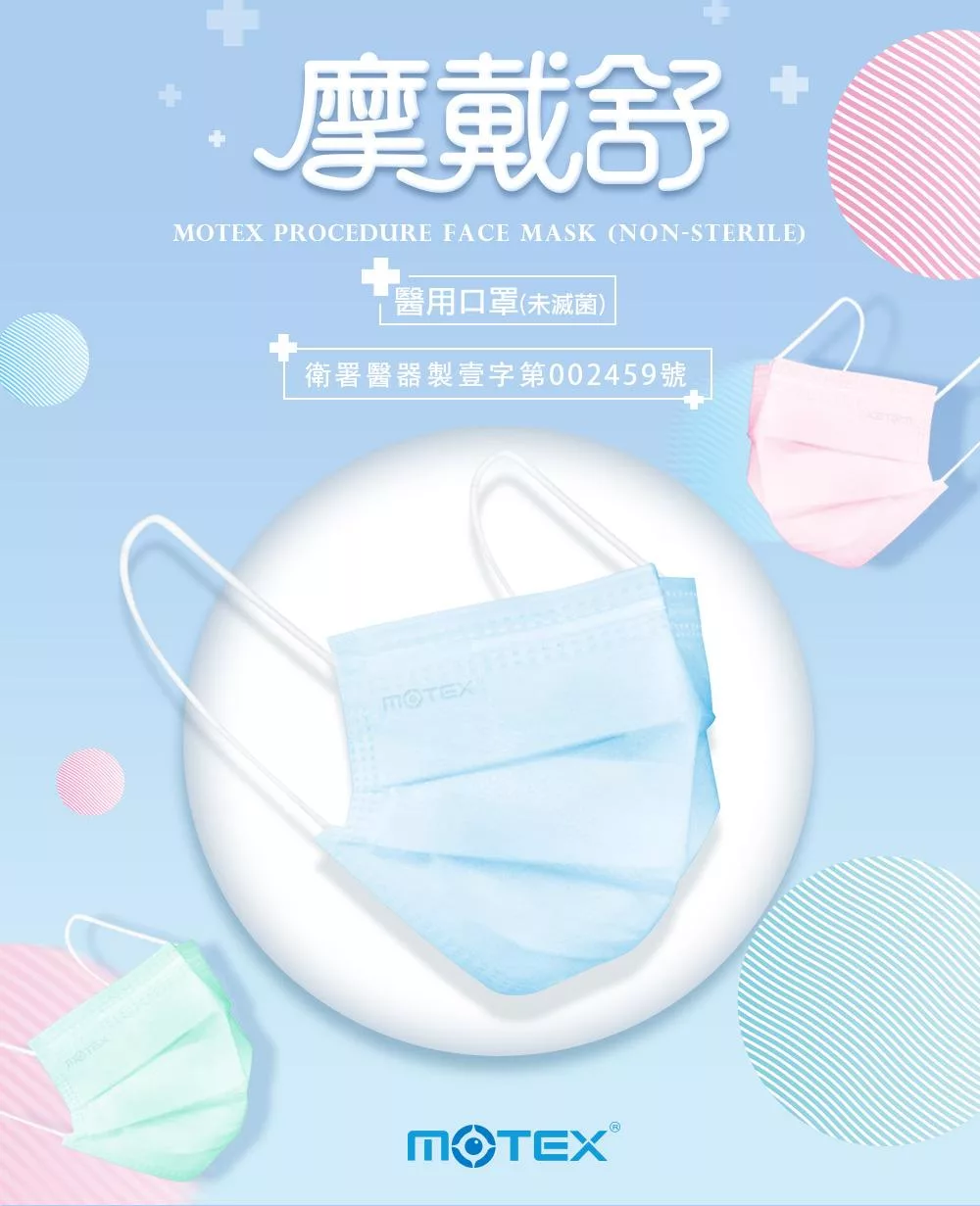 【MOTEX 摩戴舒】平面醫用口罩 (50片盒)外耳掛 天空藍