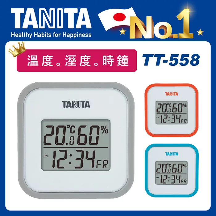 TANITA 三合一電子溫濕度計TT-558【溫度。溼度。時鐘 】灰色