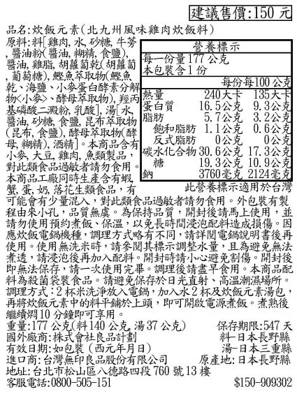 以日本北九州的鄉土料理為範本,將雞肉、胡蘿蔔、牛蒡,加入醬油及砂糖調味,與白米一同炊煮即可享用。
