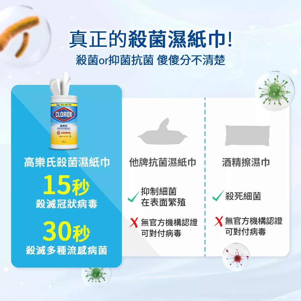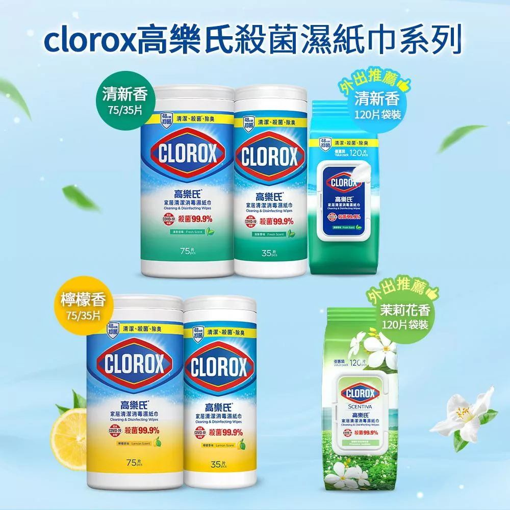 【Clorox 高樂氏】居家清潔殺菌濕紙巾-清新香120片(廚房去汙/環境消毒/消滅流感腸菌病毒/無酒精)