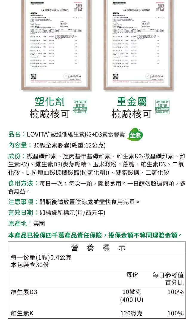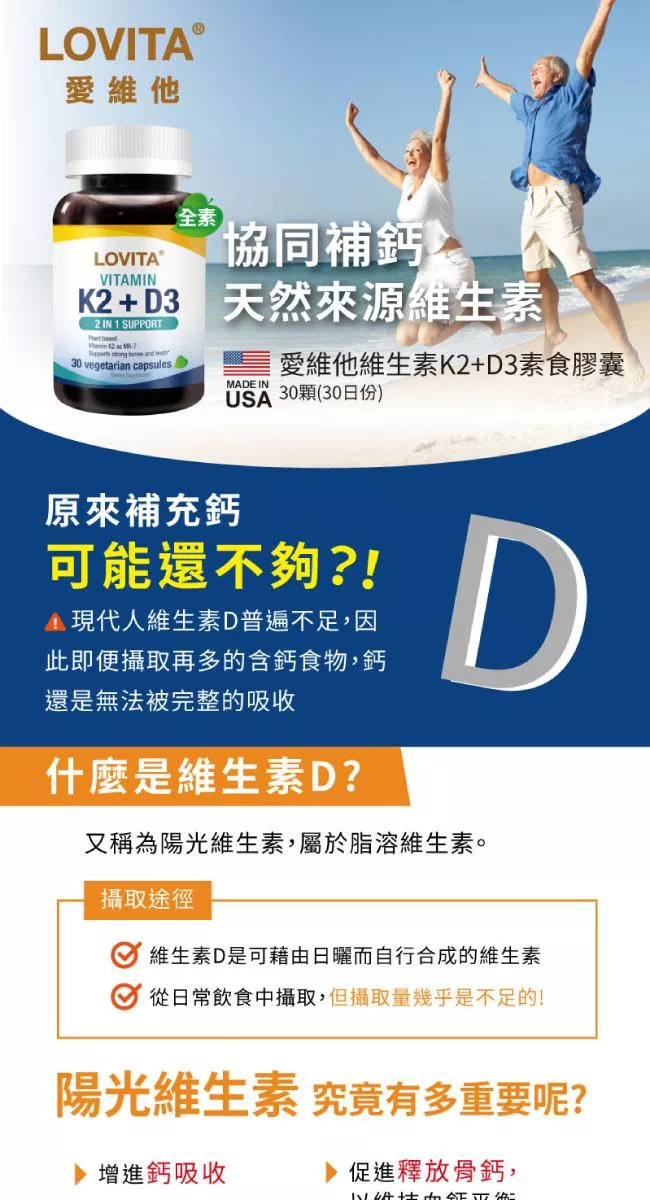 LOVITA愛維他 維他命K2+D3素食膠囊(30顆)