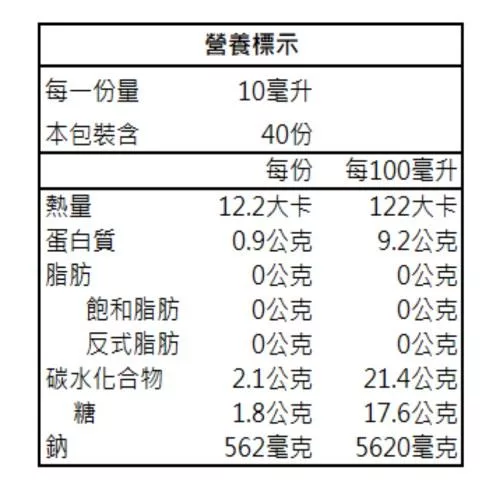• 【每份營養成份】如營養標示