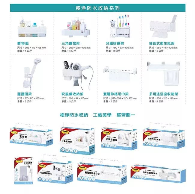 3M 無痕 極淨防水收納系列 多用途浴室收納架