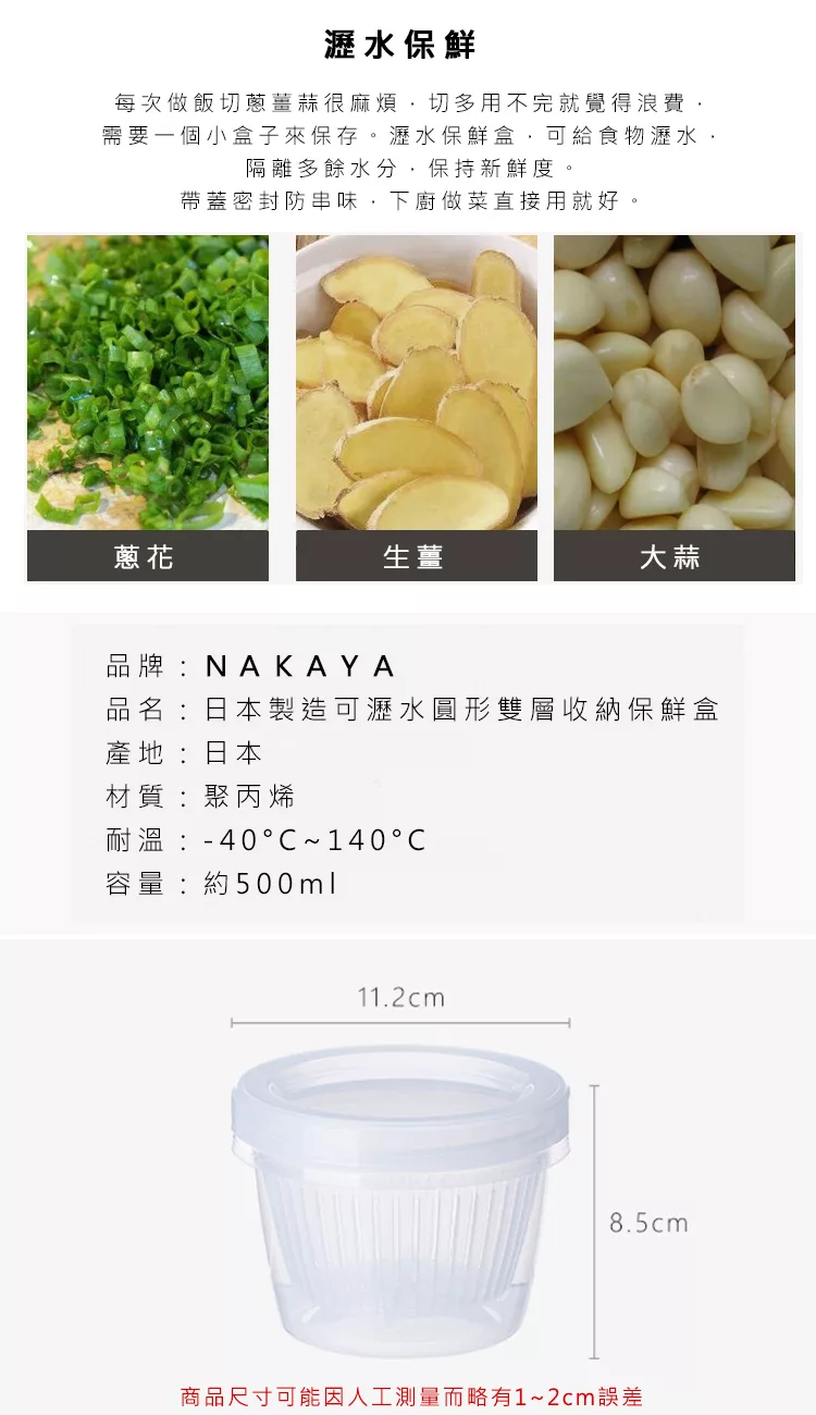 【日本NAKAYA】日本製造可瀝水雙層收納保鮮盒1100ml