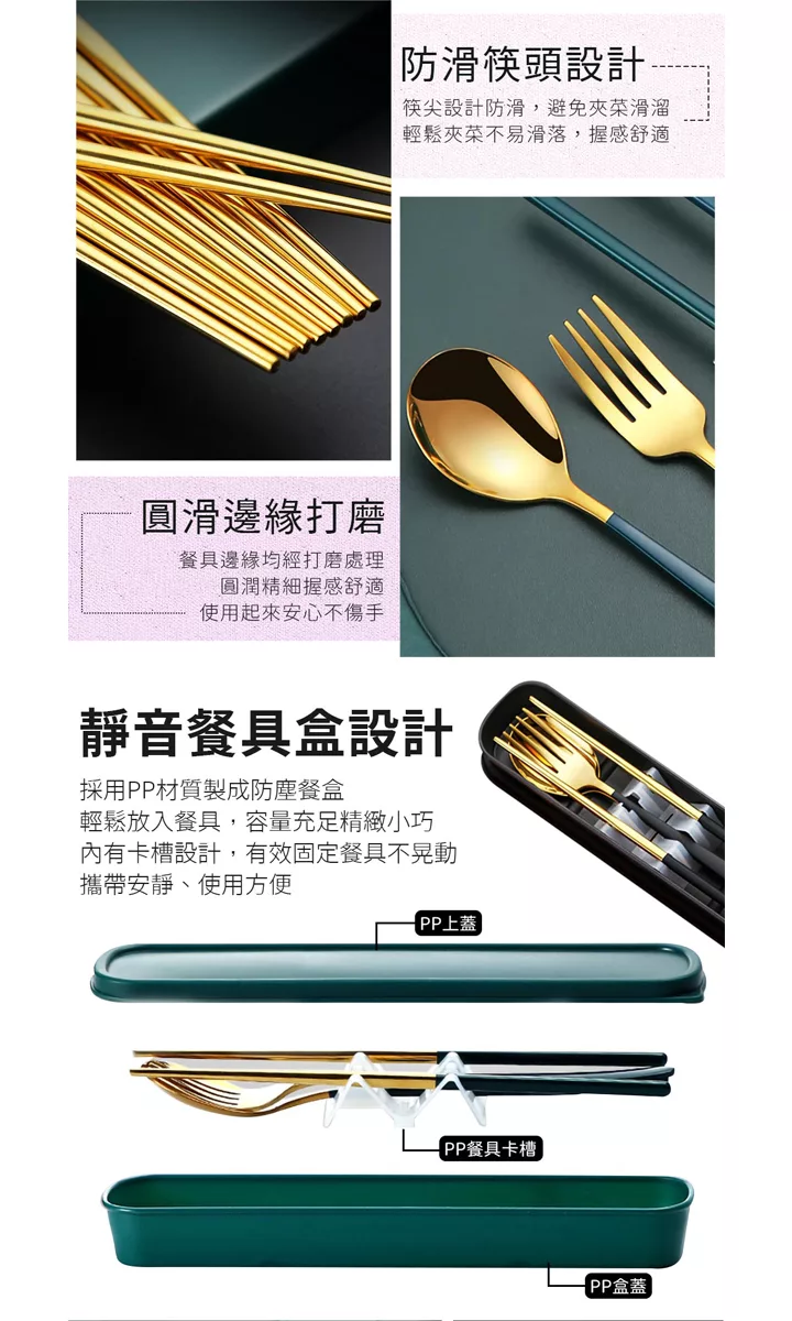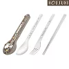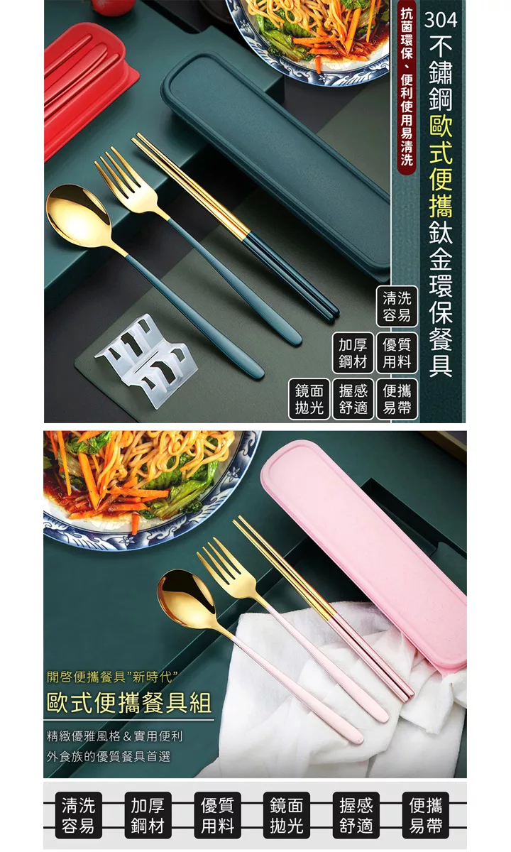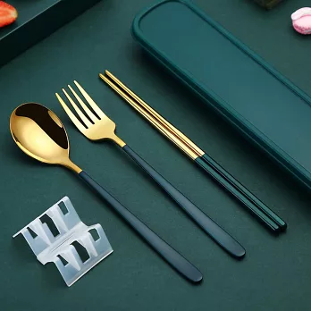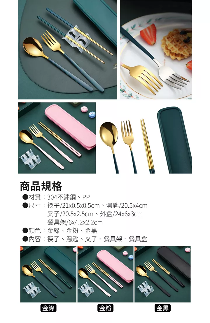 【EZlife】304不鏽鋼歐式便攜餐具四件套 金綠