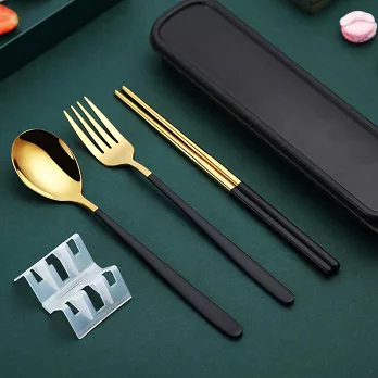 【EZlife】304不鏽鋼歐式便攜餐具四件套 金黑