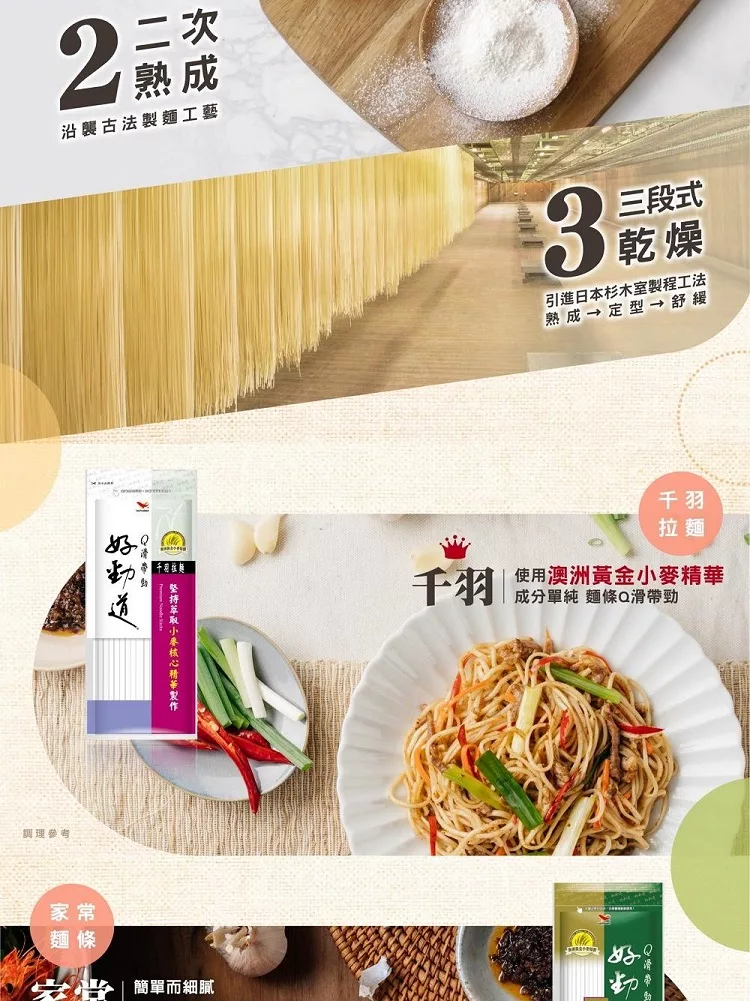 堅持選用澳洲黃金小麥、萃取小麥核心精華40%,麵條口感更為Q滑帶勁,猶如手工製麵般美味。