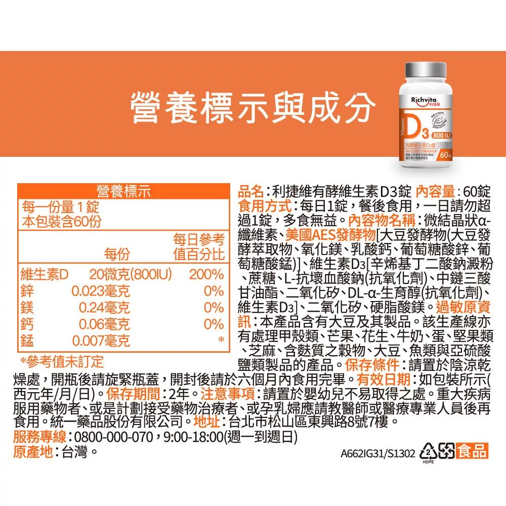 【Richvita利捷維】有酵維生素D3錠60錠 1入組