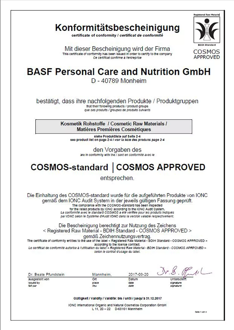 榮獲法國ECOCERT有機認證、德國COSMOS及歐盟EU-Ecolabel環保標章,為植物來源洗淨成分;