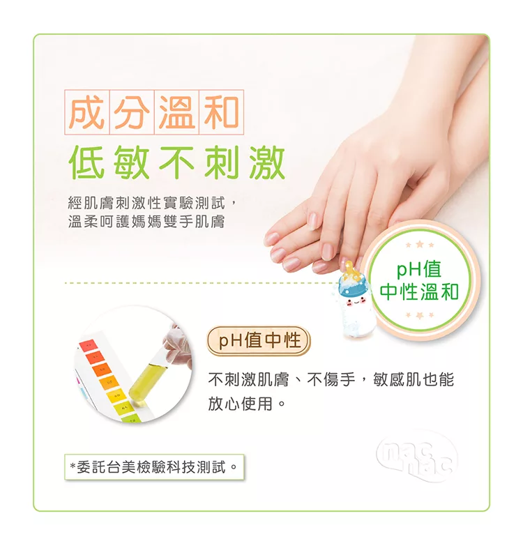 ●溫和中性配方,不刺激肌膚,添加葡萄籽菁華,保護媽媽雙手。