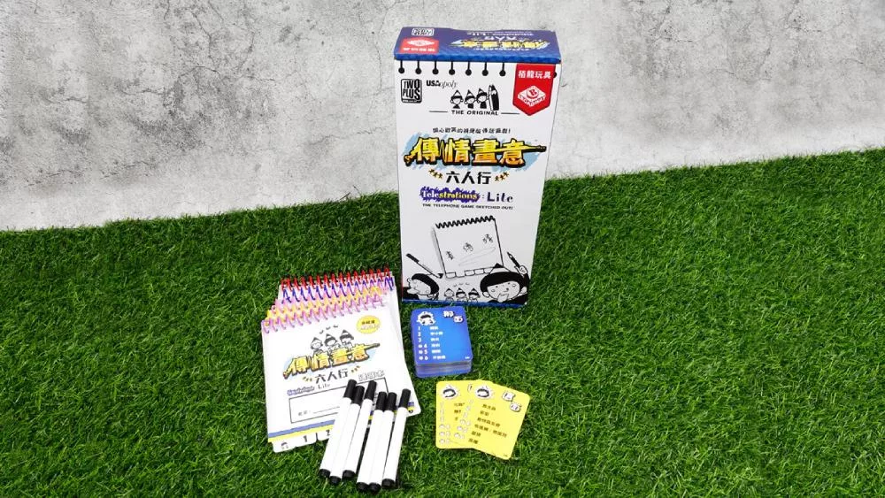 或是根據前一頁別人寫下的答案,把它畫成圖像。作畫的玩家只有60秒的時間,沙漏就是為此存在的遊戲會在速寫本傳回到玩家自己時結束。