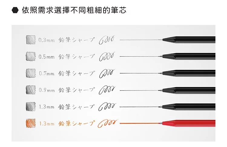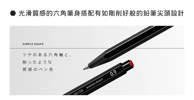 光滑質感的六角筆身搭配有如剛削好鉛筆般的尖筆頭設計
