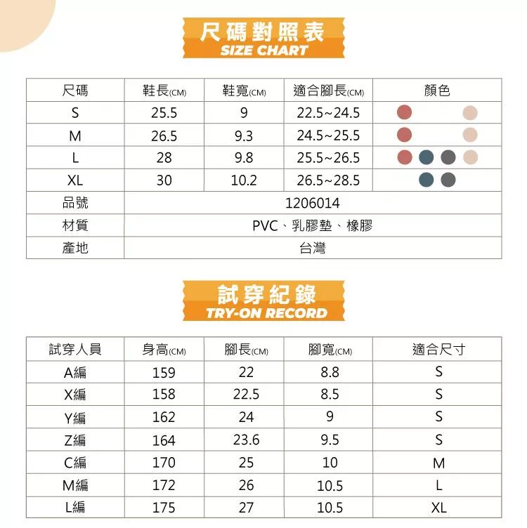 (1)鞋底磨損 (請於室內,軟墊上試穿SIZE)。