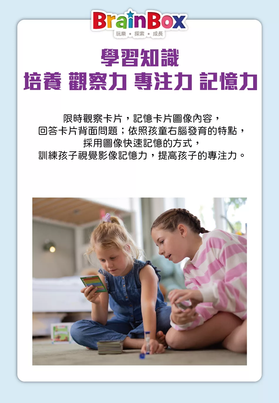 BrainBox設計給孩童學及觀察力與記憶力!10分鐘鐘後,擁有最多卡片的玩家獲勝!