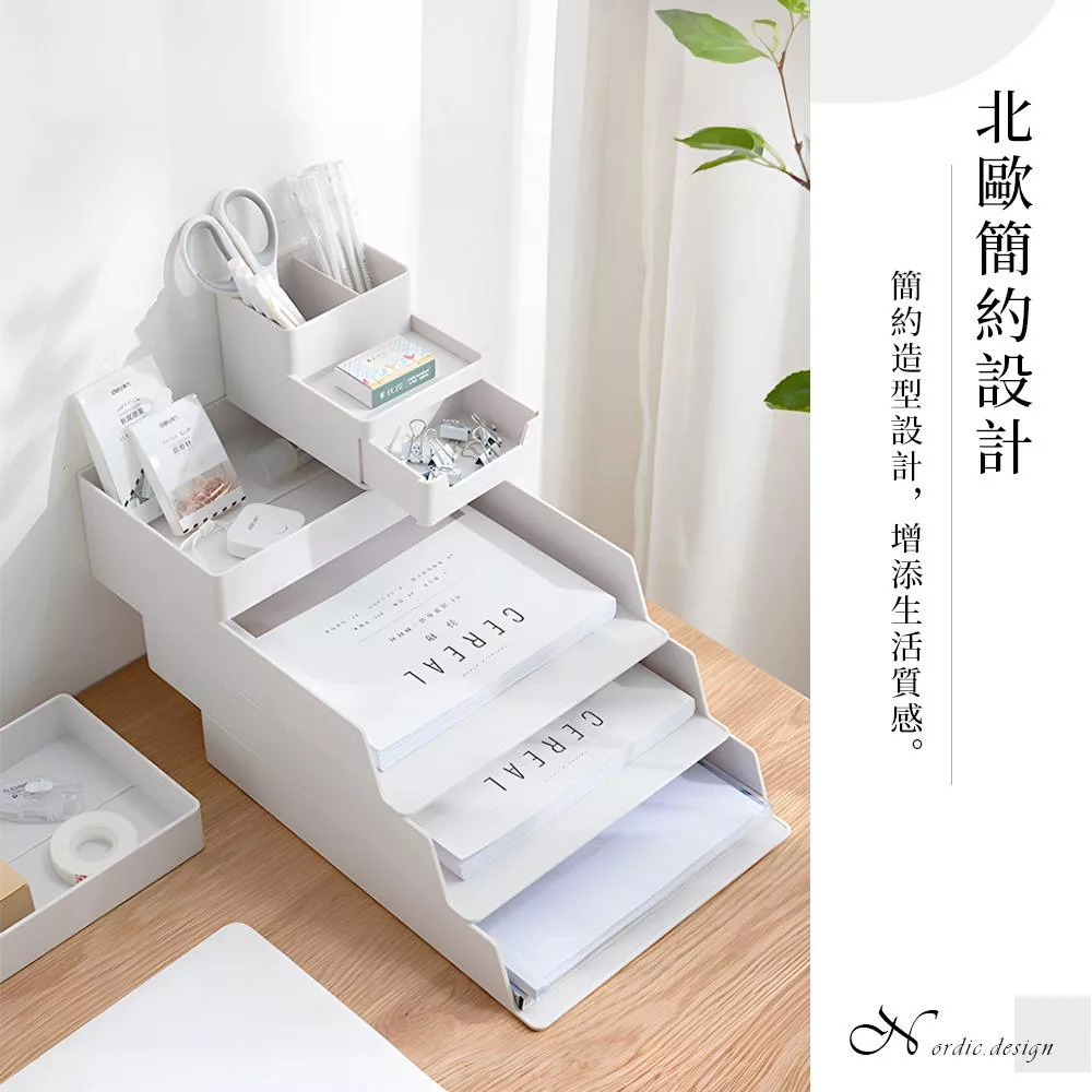 【上手家居】可疊加日式A4文件架(文件收納盒/辦公桌收納/辦公室用品/資料架/筆筒/文件盒/文件整理) 北歐白