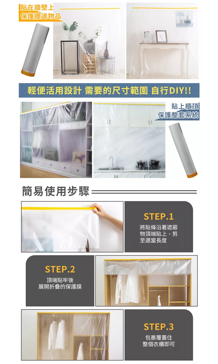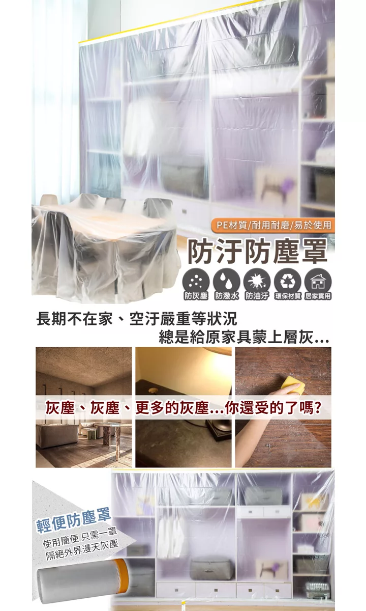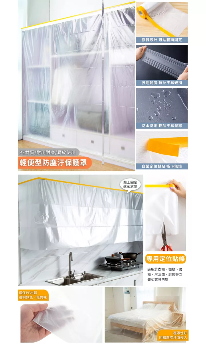 【EZlife】貼條多用防汙防塵罩(2入組)-特大/3*20M