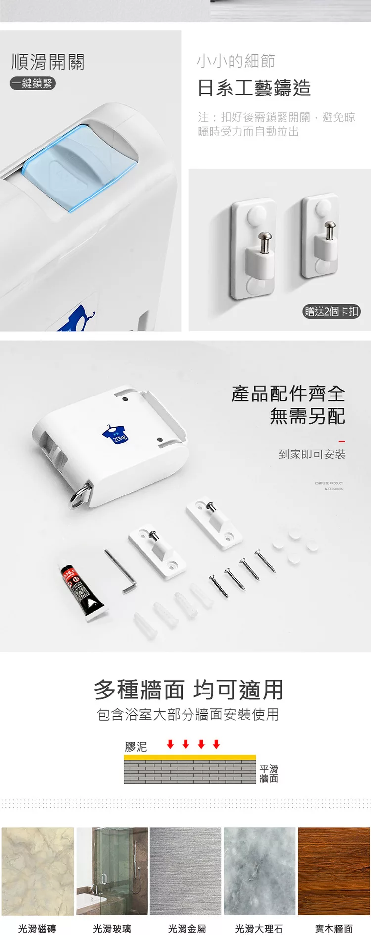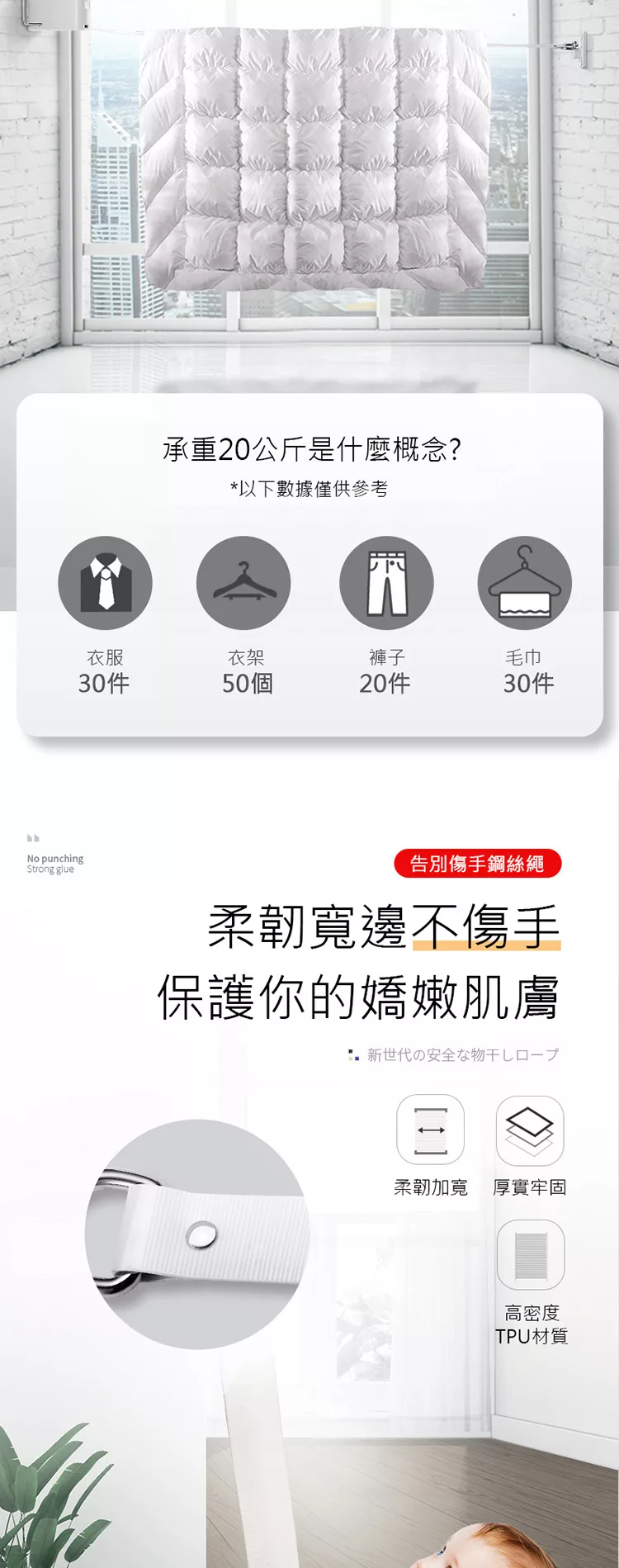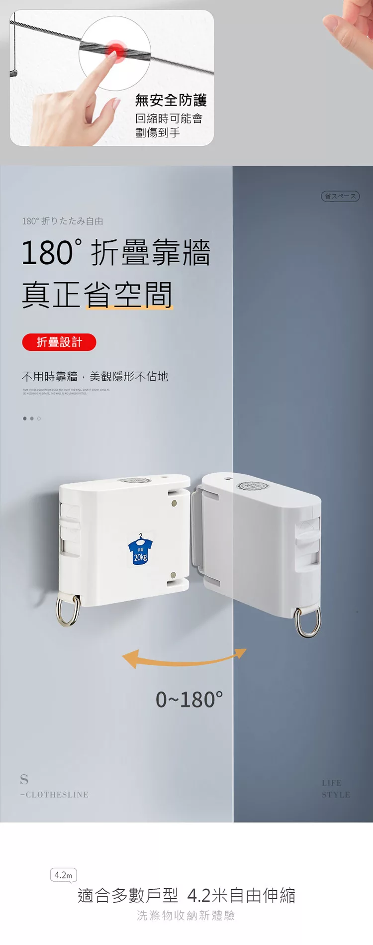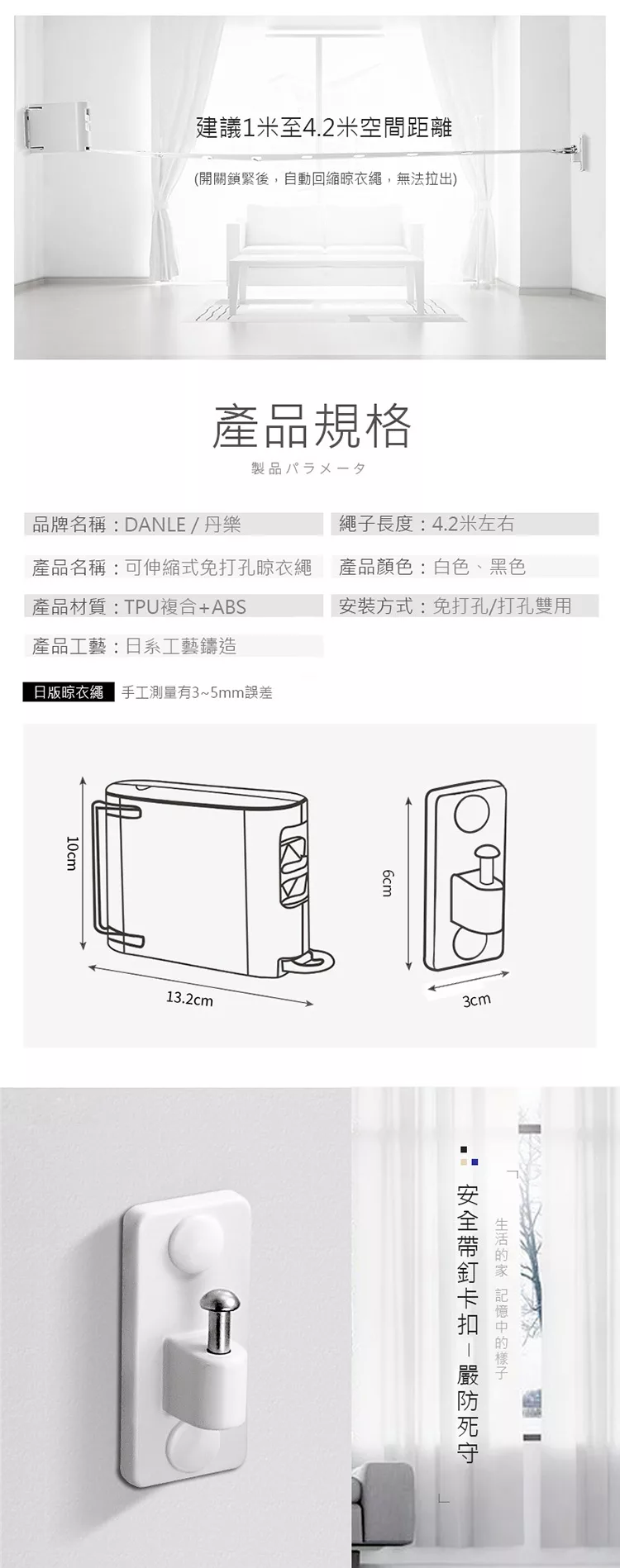 晾曬好幫手 免打孔不傷牆面 免打孔室內陽台曬衣繩