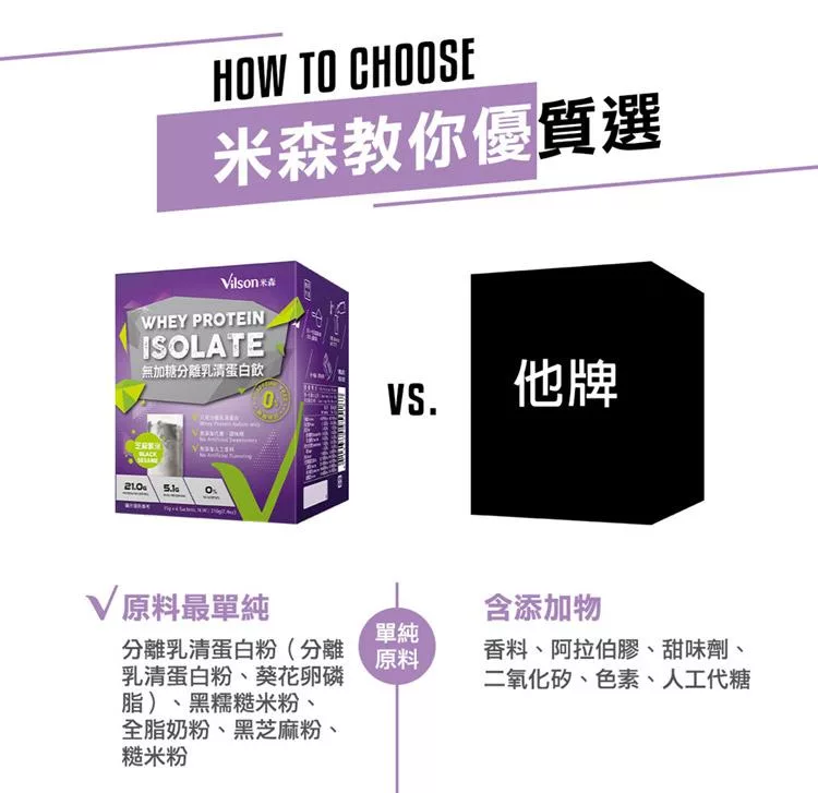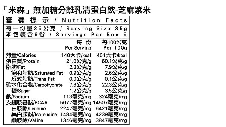 【vilson 米森】無加糖分離乳清蛋白飲 芝麻紫米(35gx6包/盒)