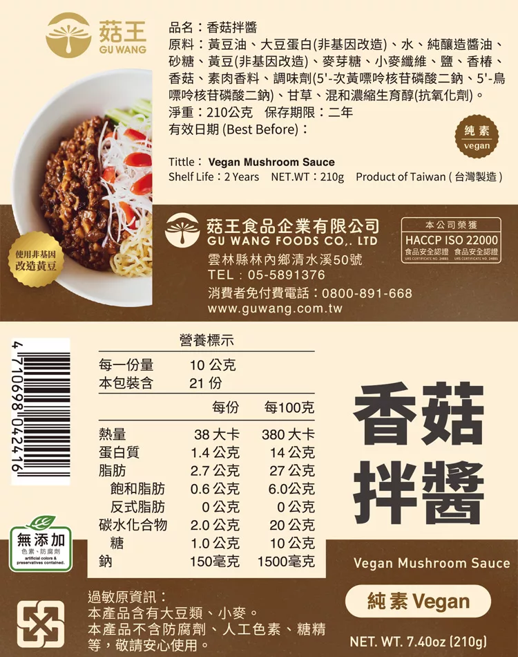 以菇王古法釀製之醬油為基底,加上台灣新社嚴選之香菇,