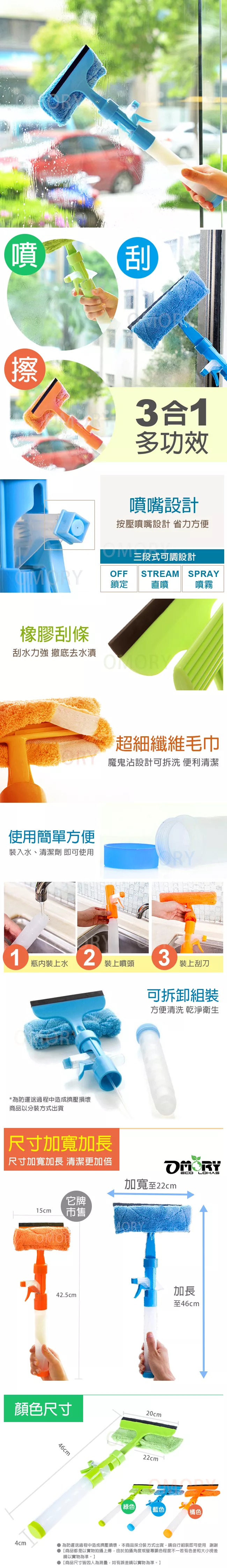 清潔窗戶、玻璃好幫手:噴水+刮水+擦拭三合一