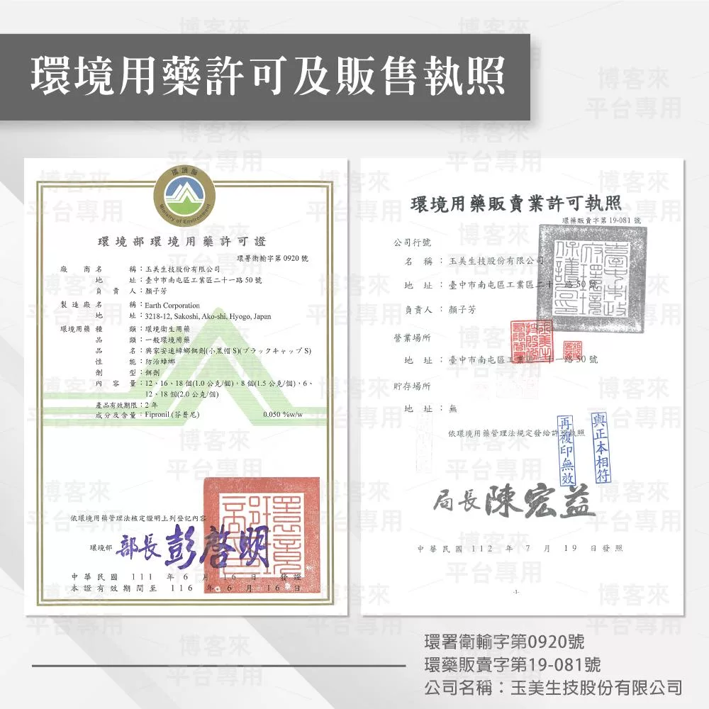 許可證字號:環署衛輸字第0920號、環藥販賣字第19-081號