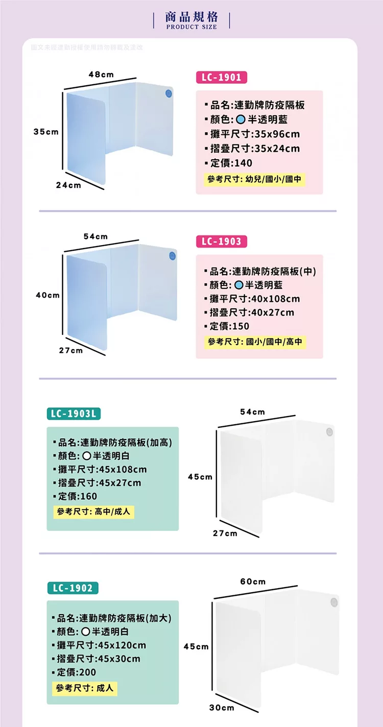 【連勤LAN CHYN】環保防疫隔板 (45×120cm) LC-1902