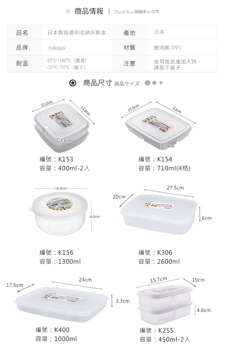 【日本NAKAYA】日本製造長方形透明收納/食物保鮮盒3000ml