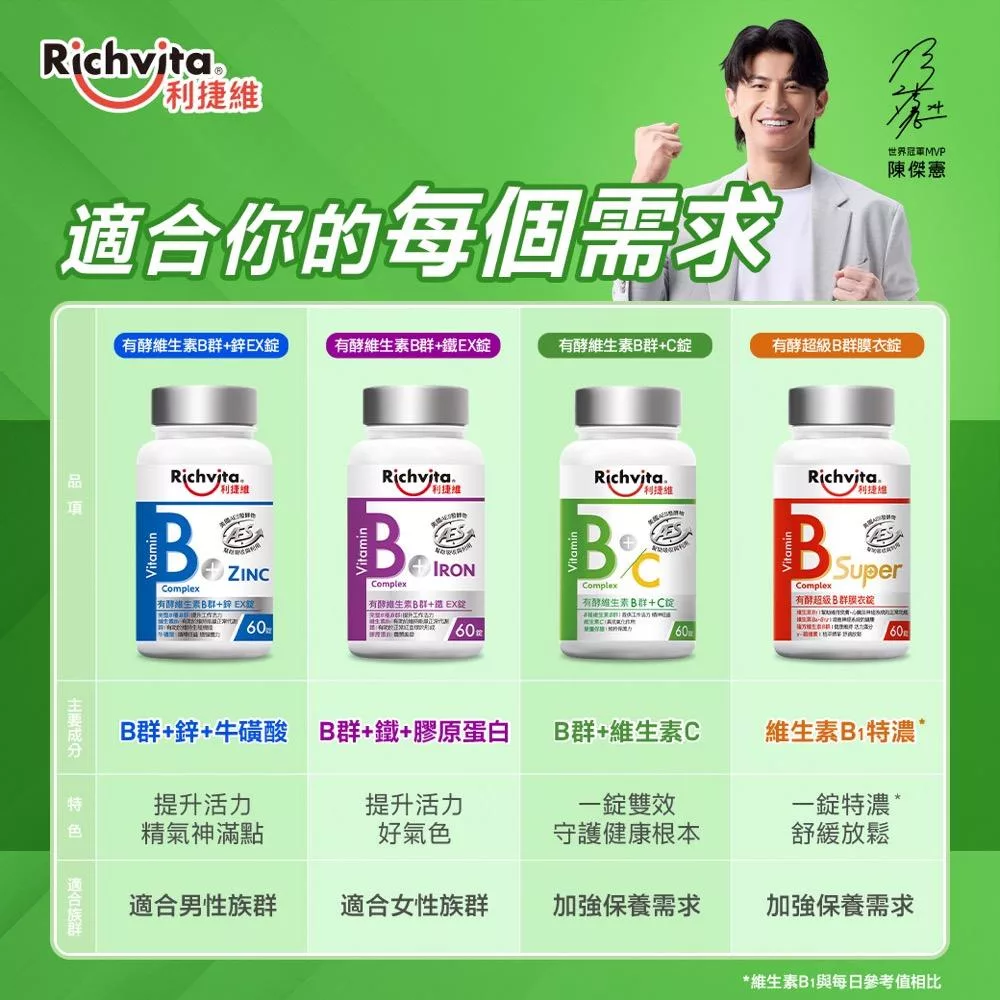 【Richvita利捷維】有酵維生素(60錠) B群+鋅EX錠(男性)