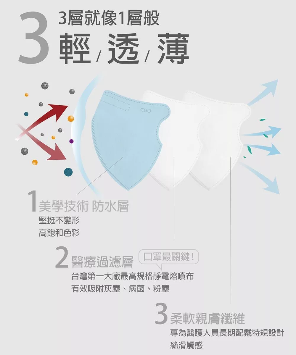 【CSD】中衛醫療口罩 成人立體 3D Purely Nude 10度裸(30片/盒)