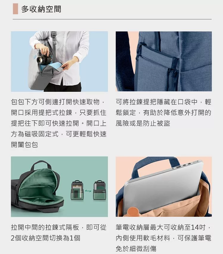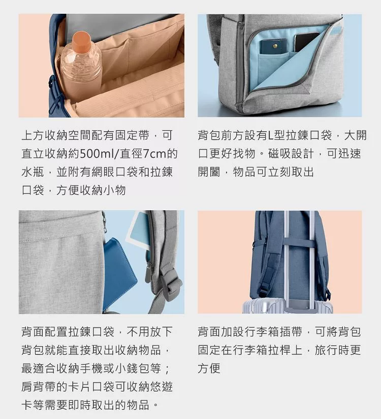 【好背客howback】韓版輕量休閒雙肩包/多功能收納曬娃包/學生後背包(無掛件) -米色