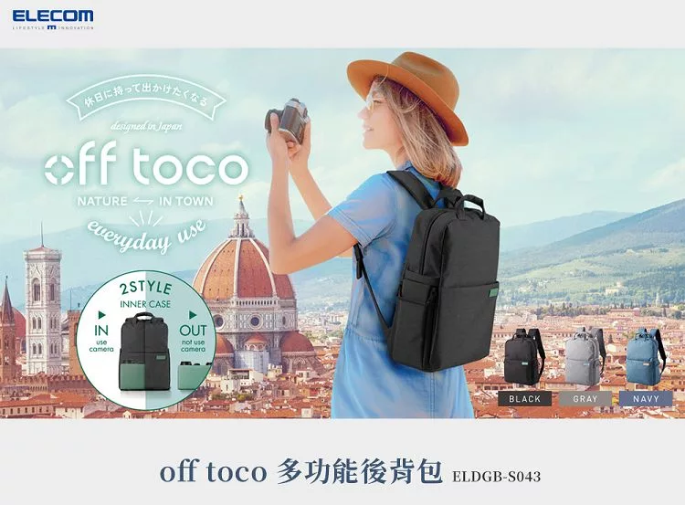 ELECOM 迷你帆布3WAY薄型後背包OFF04- 深藍