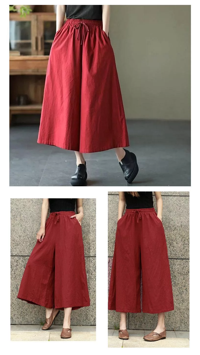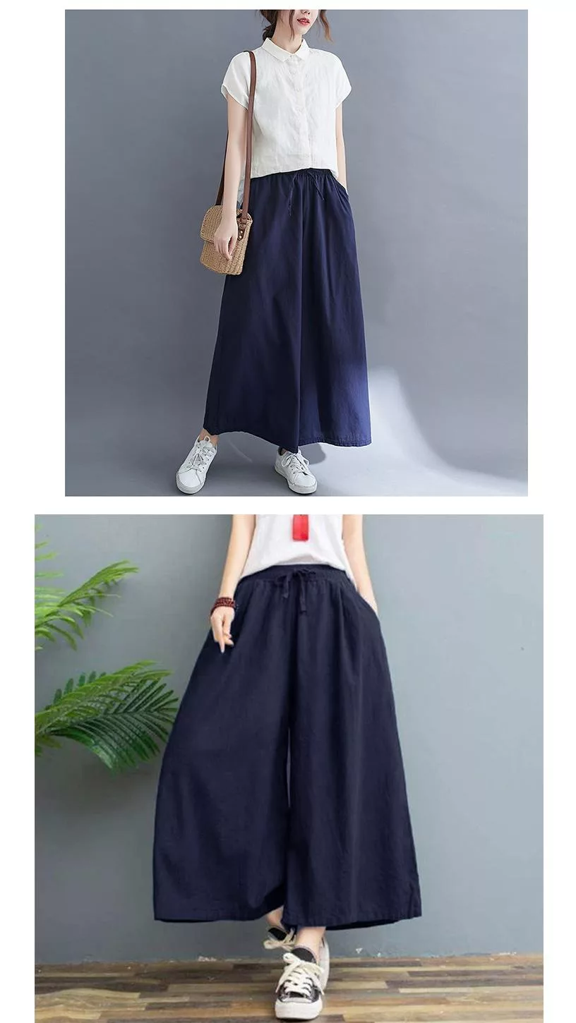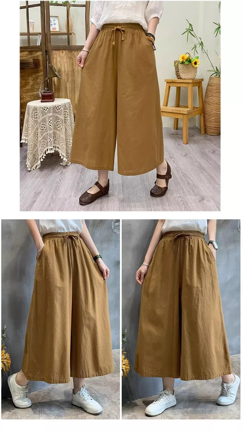 【AnZa】文藝水洗棉麻寬鬆裙褲(7色)                          FREE 黑色